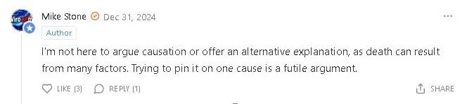 Mike thinks cause of death is too “complex” to “scientifically prove,” due to the “many variables involved”: