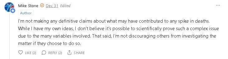 This Open Letter is a follow-up to our conversation in Mike’s forum early this year about mass-casualties in the United States in 2020, prior to the introduction of the Covid vaccines on December 14, 2020. Jamie also addressed this issue more recently, and I’ve included parts of that conversation as well.